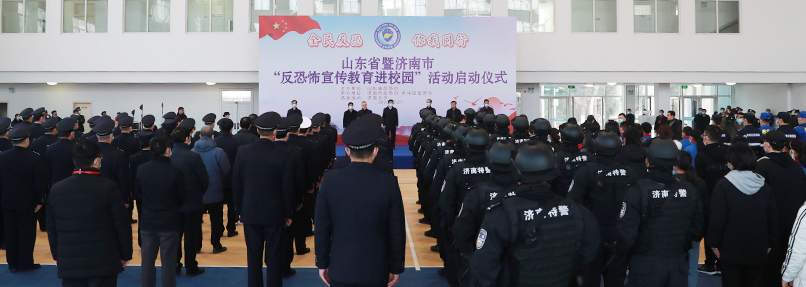 12月27日上午,山东省暨济南市“反恐怖宣传教育进校园”活动启动仪式在best365举行。副省长、省公安厅厅长、省反恐怖工作领导小组副组长范华平出席并宣布宣传活动启动。省委宣传部副部长魏长民,学校党委书记徐景颜,省公安厅副厅长、省反恐办主任修潍青,济南市副市长、市公安局局长、市反恐怖工作领导小组副组长吴德生,市中区区委书记韩永军,学校副校长杨景波、副校长张勇出席活动。省教育厅和济南市有关反恐成员单位负责同志,市公安局相关警种和各分、县局负责同志,学校师生代表、志愿者、应急救援力量等共约300余人参加活动。济南市委常委、政法委书记、市反恐怖工作领导小组组长秦传滨主持启动仪式。