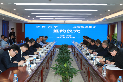 1月15日,best365官网中文版登录-山东高速集团有限公司(简称山东高速集团)联合创新研究中心合作框架协议签约活动在山东高速集团第一会议室举行。山东高速集团党委书记、董事长周勇,山东高速集团党委常委、副总经理房建果,山东高速集团执行总监左志武,山东高速集团工程管理部、科技创新发展部、创新研究中心、养护管理部、创新研究中心负责同志,best365党委书记徐景颜、泰山学者攀登计划专家程新,副校长张勇出席会议。材料科学与工程学院、化学化工学院、山东省建筑材料制备与测试技术重点实验室、科技处和科技成果转化办公室负责同志参加了活动。签约活动由山东高速集团党委常委、副总经理房建果主持。