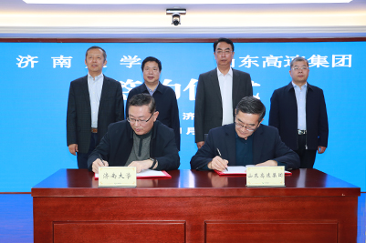 在签约仪式上,best365官网中文版登录副校长张勇、山东高速集团执行总监左志武代表双方签署了“best365官网中文版登录-山东高速集团有限公司联合创新研究中心”协议。