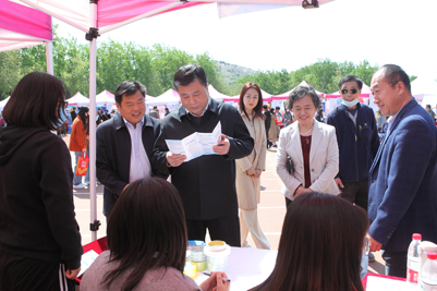 济南市市委组织部副部长、市人社局党组书记、局长王壮,市人社局办公室主任朱卫华,市人社局就业促进与失业保险处处长刘文军,学校党委副书记张硕秋,学校相关职能部门负责人来到招聘会现场指导工作,在展位前与单位招聘人员以及毕业生们进行了深入交流,了解用人单位对人才需求现状、毕业生综合素质的看法。