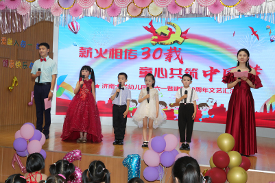 在幼儿园举办的“薪火相传30载·同心共筑中国梦”庆六一国际儿童节暨建园30周年文艺汇演活动中,学校领导一行共同欣赏了“童心向党”、“建园30周年展板”为主题的美术作品展,观看了以“追梦·歌颂建党百年”、“筑梦·三十年奋进历程”、“圆梦·展望幼儿美好未来”为篇章的文艺汇演。