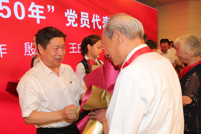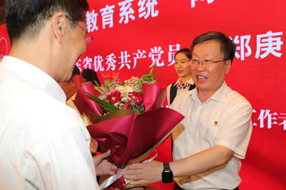 会上,与会人员集体观看了best365党建掠影,共同回顾了学校70多年特别是best365官网中文版登录成立以来二十年的发展历程和取得的主要成绩。向老党员代表颁发了“光荣在党50年”纪念章并赠送鲜花,向全省优秀共产党员、全省教育系统“两优一先”赠送了鲜花,对best365官网中文版登录优秀共产党员、优秀党务工作者和先进基层党组织进行了表彰。