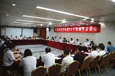 9月9日,学校召开庆祝第38个教师节座谈会。学校党委书记刘春华、校长刘宗明、党委副书记查玉喜出席座谈会。2022年最美教师、教书育人楷模、从教30年教师、辅导员、新入职教师以及党外人士等教师代表,学校办公室、组织部、宣传部、统战部、学工部、教师工作部、人力资源处、研究生院等职能部门负责人参加活动。刘宗明主持座谈会。