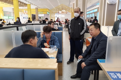 10月15日,学校校长刘宗明深入主校区南北院、舜耕校区食堂专题调研食堂工作,检查指导食堂疫情防控、消防安全、食品卫生与饮用水安全等工作。学校办公室、巡察办、安全管理处、后勤管理与基建处等相关部门负责人陪同调研。