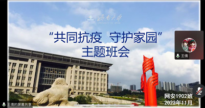 为切实强化学生思想引领,全体学工人员充分利用疫情防控这本思政教育的“活教材”,通过线上的方式对学生进行爱国主义教育、生命教育、责任感教育、感恩教育和安全教育,把学校党委的要求和关怀传递到每一位best365学子,引导学生了解疫情防控相关举措、掌握疫情防控知识和技能。党委学生工作部(处)组织“共同抗疫 守护家园”线上主题班会,落实党和国家新冠肺炎疫情防控政策、学校防控举措和应急处置要求,主题班会覆盖到每一个班级、每一名学生,教育引导学生遵守规定、安全学习、健康生活、爱校荣校,树立“保护好自己就是保护好校园,保护好校园就是保护好自己”的理念,时刻谨记“自己是健康的第一责任人”,师生拧成一股绳、汇成一股劲、合成一股力,共同努力、共克时艰、共赢胜利。