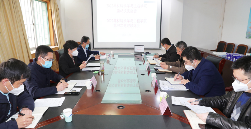 本次学院党委会讨论审议了《材料科学与工程学院2022年度基层党建工作自评报告(讨论稿)》,党政联席会研究了拟引进白扬等三位师资博士后和优秀硕士博士论文评选工作。会上,学院班子成员依次发言、各抒己见,提出意见建议,并表决通过研究议题。