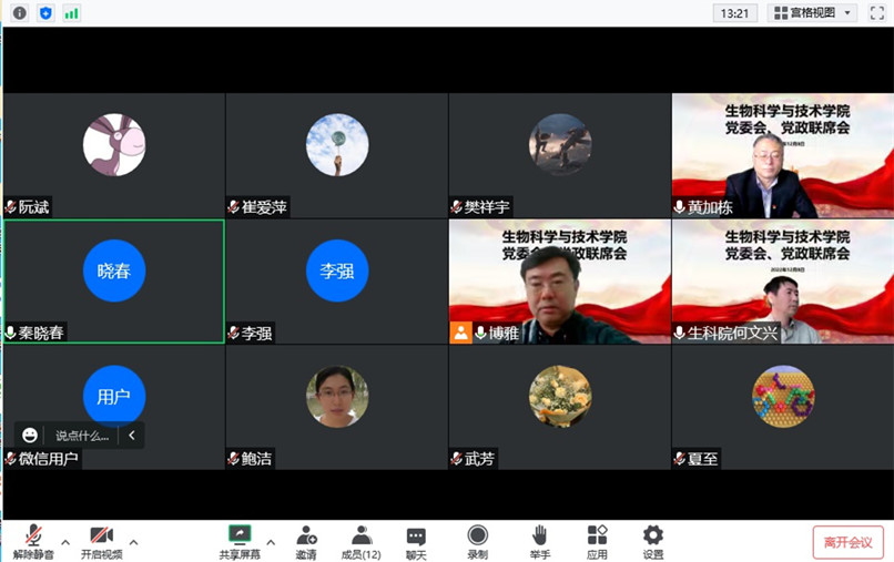 12月8日上午,学校党委常委、副校长黄加栋出席指导生物科学与技术学院党委会和党政联席会,会议以线上的方式进行,生物科学与技术学院全体班子成员参加会议,各党支部书记列席会议。会议由生物科学与技术学院党委书记孙翔玲主持。