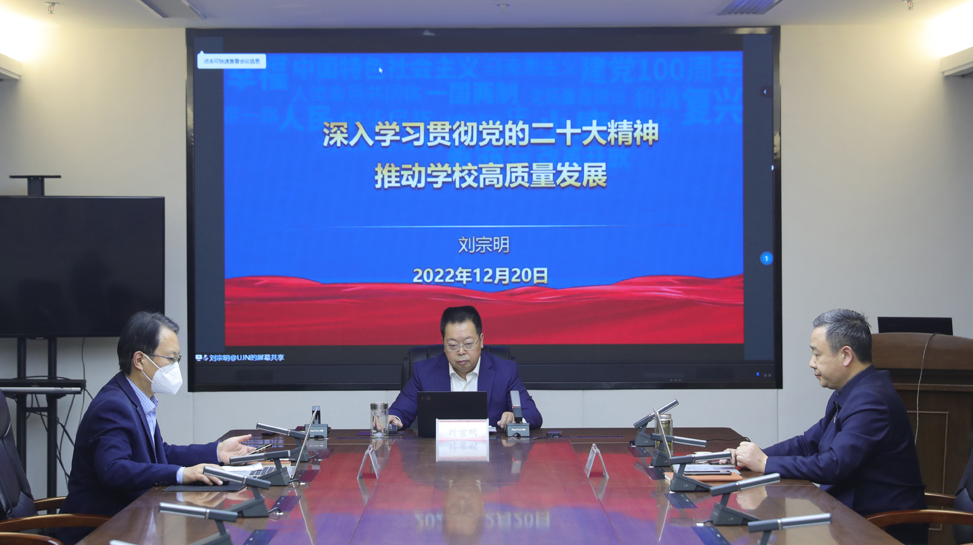 12月20日下午,校长刘宗明为舜耕校区干部师生作党的二十大精神宣讲报告。学校党委副书记查玉喜主持报告会,学校党委常委、宣传部长贾海宁,舜耕校区各单位干部、职工、学生骨干代表通过线上线下相结合方式参加报告会。