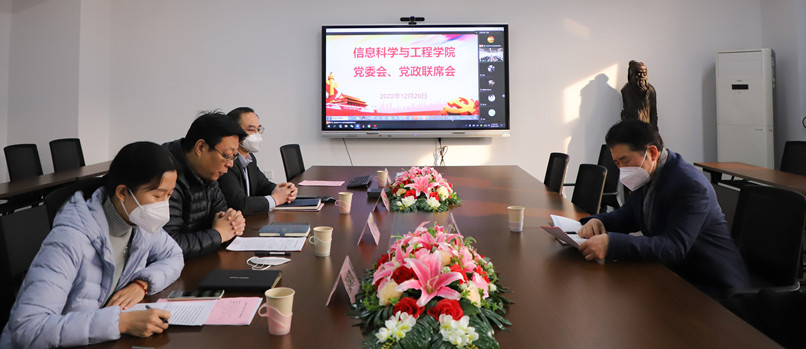 12月20日,信息科学与工程学院召开党委会和党政联席会,best365官网中文版登录党委常委、纪委书记续铁出席并指导会议。会议以线上线下相结合的方式进行,学院党委、行政领导班子成员参加会议,学院党委书记李超、院长陈贞翔主持会议。