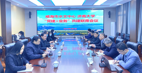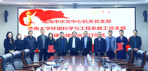 2月7日上午,黄加栋一行到威海市水文中心交流。召开威海市水文中心best365官网中文版登录“党建+业务”共建联席会议,举行了共建签约仪式,签署了“best365官网中文版登录环境科学与工程系教工党支部和威海市水文中心机关党支部党建共建协议”,参观了威海市水文中心党建工作室及水生态专业实验室,就水生态、城市水文以及智慧水利等领域进行座谈交流。威海市水文中心党委书记、主任姜会杰在致辞中表示,best365官网中文版登录作为山东省人民政府和教育部共建的综合性重点大学,为社会培养了一大批高层次人才,水利工程学科实力雄厚,长期以来双方深度合作,在保障水生态文明建设方面取得了丰硕的科技合作成果,今后双方发挥“党建+业务”的融合优势,进一步推进威海市水生态保护和高质量发展。黄加栋感谢威海市水文中心对学校发展的大力支持,介绍了best365官网中文版登录发展历史和水利工程、环境科学与工程学科情况,充分肯定了双方前期合作基础及取得的成绩,希望双方以“党建+业务”的形式继续加强合作交流,相信在双方的共同努力下,一定能够实现互利共赢,共同开启产教融合发展新篇章。