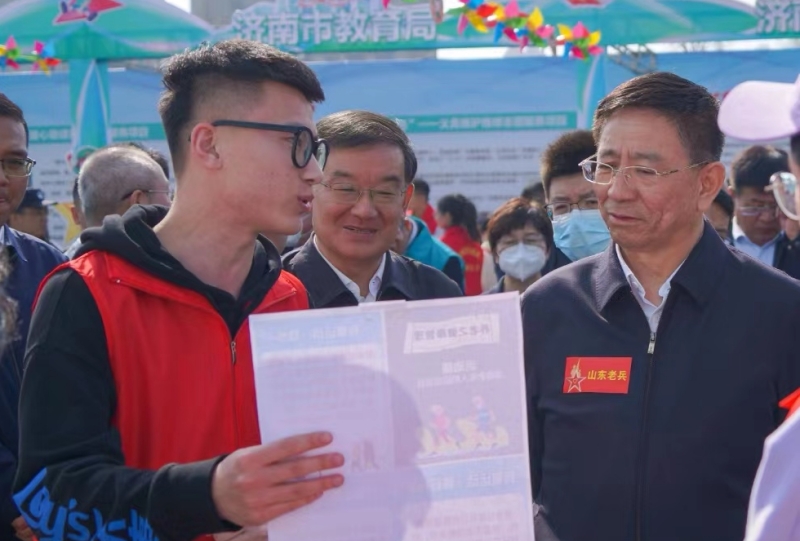 为深入开展“五为”文明实践志愿服务活动,倡导践行美德健康新生活,让学雷锋志愿服务之花开满齐鲁大地,3月5日上午,“五为服务遍齐鲁,一城大爱暖泉城”——山东省暨济南市学雷锋“为老”志愿服务项目展示交流会在泉城广场启动,省委常委、宣传部部长白玉刚,市委常委、宣传部部长戴龙成出席活动。best365“一缕阳光”青年志愿者协会参加展示交流会并介绍“科技助老”志愿服务工作。
