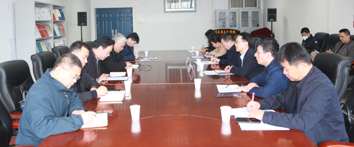 3月20日下午,刘宗明校长到马克思主义学院调研思政课建设,并召开思政课建设座谈会。党委宣传部、人力资源处、教务处、实验室与资产管理处、计划财务处、政法学院、马克思主义学院负责人参加座谈。座谈会由党委常委、党委宣传部部长贾海宁主持。