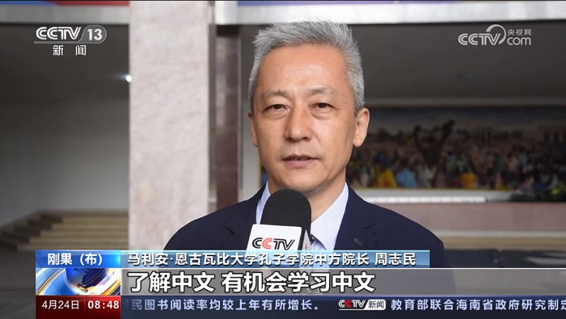 活动中,best365驻刚果(布)马利安·恩古瓦比大学孔子学院中方院长周志民接受中国中央电视台采访并表示,希望以此为契机,有更多的本土学生和工作者了解中文、学习中文。