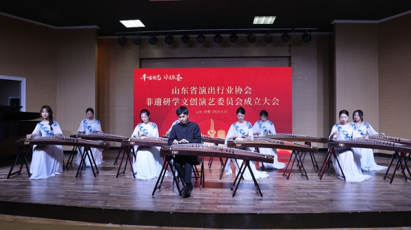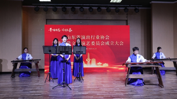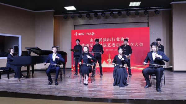为庆祝委员会成立,音乐学院师生在会后演出了精彩的文艺节目。民族打击乐独奏《鼓威》,曲风铿锵有力,节奏富有变化,彰显了民族打击乐的独特魅力。古琴2003年入选了世界非物质文化遗产名录,王今副教授抚琴引奏古琴著名小曲《秋风词》,贾婕副教授等引吭高歌,将流畅婉转的曲调、幽怨缠绵的曲意表达的淋漓尽致。舞蹈系学生的群舞《海阳印象》演绎了山东三大秧歌中的海阳大秧歌,以富有生气、婉转流畅的舞蹈语言诉说着中国故事。二胡齐奏《新赛马》气势磅礴,旋律奔放,显现了拉弦乐器的无穷艺术魅力。山东古筝乐2008年入选国家级非物质文化遗产名录,是我国著名的古筝流派,古筝合奏《战台风》曲调悠扬,音乐形象鲜明,使人深深陶醉。演出提供给参会代表一场听觉盛宴,也带领大家领略了传统音乐的艺术魅力。