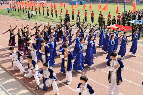 运动员、裁判员退场后,精彩的团体操表演开始。整齐划一的动作,热情动感的表演激情,学生们用青春的步伐跳出朝气和活力。