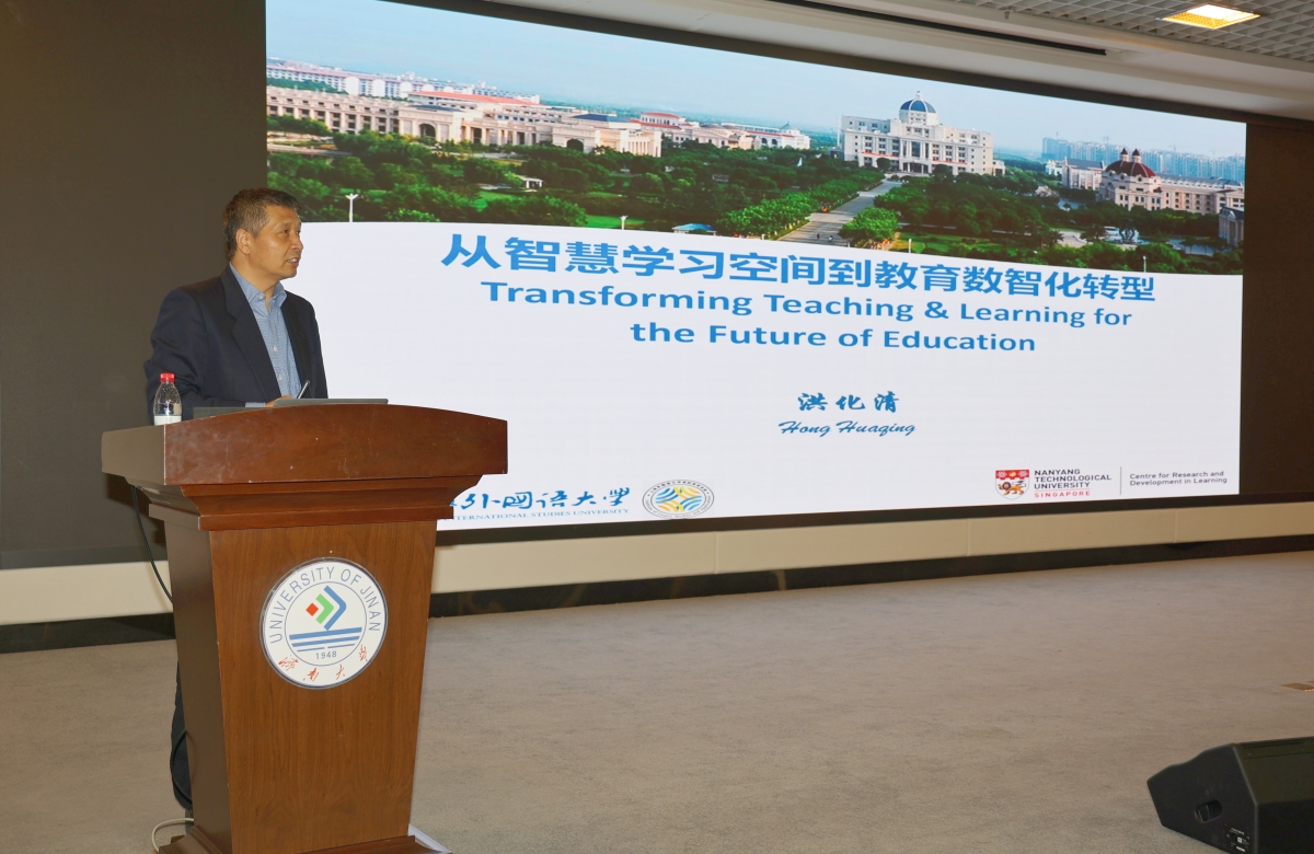随后,洪化清教授在学校第一学术报告厅为best365教师作了题为“从智慧学习空间到教育数智化转型”的专题报告。洪化清教授以新加坡南洋理工大学的历史沿革和基本校情为例,阐述了国际化的教学理念变革和教学方法选择的重要性,基于自身重大项目及教学研究工作经历,介绍如何运用技术手段促进“教和学”发生变化。他认为,新型学习生态系统的构建需要从教学理念、信息技术、学习空间等三个方面进行改革研究和总体设计,学校应该在大数据学习分析的基础上建立真正以学习者为中心的教学新模式,帮助学生实现自主式、个性化的学习模式转变,从而做到以学习的发生和学生的发展为中心,推动“教和学”的范式转变。为了让教师们更形象地体会到技术手段在教学中的应用,洪化清教授具体阐释了南洋理工大学课堂粘性分析、课堂情感自动分析的操作方法,多角度向教师们展示了如何利用人工智能和大数据学习分析技术,捕捉学生学习过程数据,推进教育教学创新和优质学习发展。