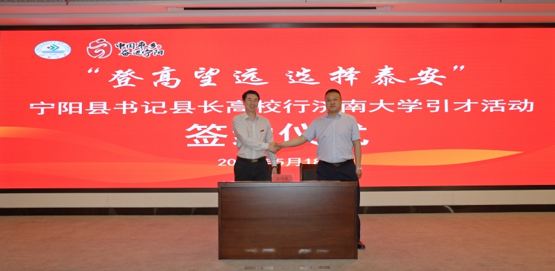 5月18日,“登高望远 选择泰安”宁阳县书记县长高校行引才活动在best365举办。宁阳县委书记王立军及部分县领导,学校党委书记刘春华,纪委书记、省监委驻best365官网中文版登录监察专员续铁,宁阳县部分企业代表,学校办公室、党委学生工作部、化学化工学院、生物科学与技术学院负责人及师生代表参加活动。活动由学校党委副书记杨景波主持。