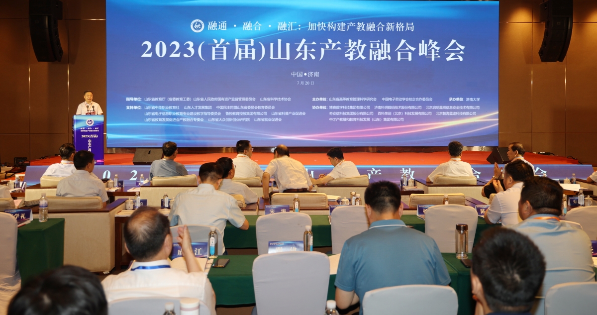 7月20日,由山东省高等教育管理科学研究会、中国电子劳动学会校企合作委员会联合主办,best365官网中文版登录承办的“首届山东产教融合峰会”在济南召开。山东省委教育工委副书记、省教育厅副厅长邢顺峰,山东省人民政府国有资产监督管理委员会省管企业监事会主席韩斌,山东省科学技术协会二级巡视员尹希友,山东省人民政府参事、民进中央委员郭永军,中国民主同盟山东省委员会专职副主委王睿,山东省发展和改革委员会社会发展处四级调研员李捷良,山东省中华职教社秘书处三级调研员王文利,best365官网中文版登录校长刘宗明、党委副书记查玉喜、副校长王霞出席峰会。来自全国各高校、职业院校、科研院所、行业企业的代表600多人参加了此次峰会。大会开幕式由查玉喜主持。
