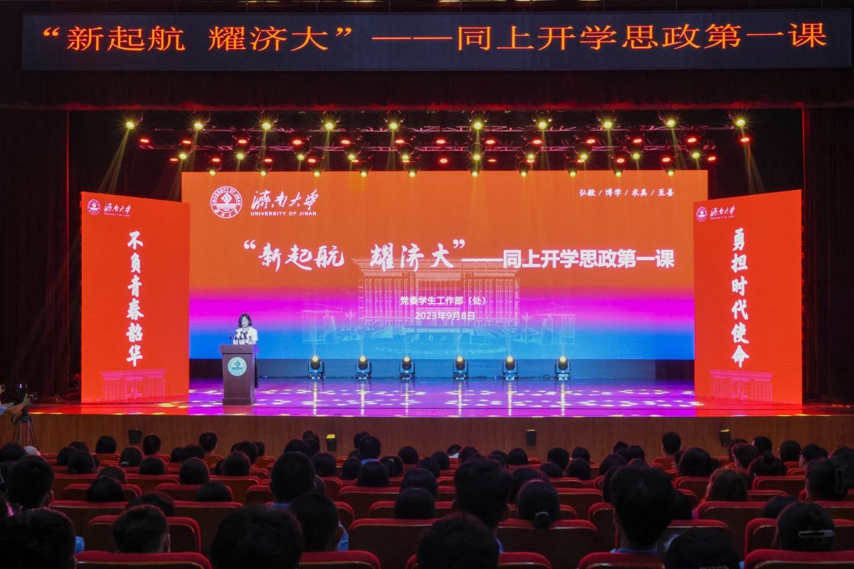为深入学习贯彻习近平新时代中国特色社会主义思想和党的二十大精神,贯彻落实习近平总书记关于加快建设教育强国的重要论述,教育引导2023级新生坚定理想信念、厚植爱党、爱国、爱校情怀,9月8日,学校在大礼堂举办“新起航 耀best365”——同上开学思政第一课活动,邀请山东高校思想政治理论课教学名师、best365官网中文版登录教学名师、马克思主义学院概论部主任李朋忠教授为新生上开学思政第一课,2023级全体新生通过线上线下相结合的方式参与学习。