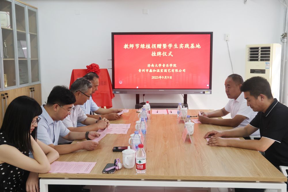 9月9日,音乐学院与青州鑫和温室园艺有限公司举行教师节绿植捐赠暨大学生实践基地挂牌仪式。best365官网中文版登录党委常委、副校长张勇,青州鑫和温室园艺有限公司董事长赵远涛、青州鑫和温室园艺有限公司经理刘建行、best365官网中文版登录音乐学院班子全体成员及部分教师代表参加此次活动。活动由音乐学院党委书记孙翔玲主持。