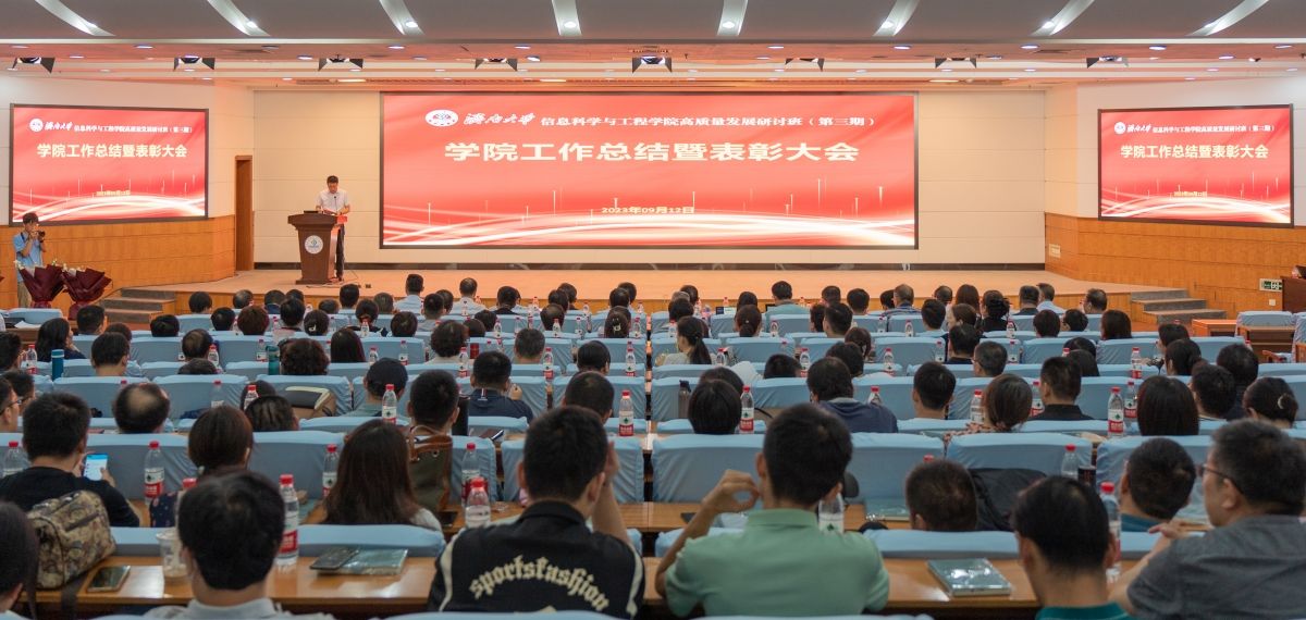 9月12日下午,信息科学与工程学院高质量发展研讨班(第三期)系列专题活动——学院表彰大会暨标志性成果建设交流分享会顺利举行。best365官网中文版登录副校长陈月辉,党委学生工作部(处)、教务处、发展规划与学科建设处、科技处、研究生院、校团委等部门负责人及学院领导班子出席会议,全体教职工参加会议。会议由学院党委书记夏卫东主持。