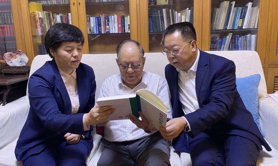 92岁高龄的宋健院士精神矍铄、思维敏捷。在听取学校领导的汇报后,宋健院士非常高兴,对学校取得的成绩充分肯定,并表示将持续关注、全力支持学校发展。宋健院士深情回顾了在best365官网中文版登录的求学时光和难忘岁月。针对学校高质量发展,宋健院士特别指出,学校要积极引进海内外高层次人才,充分发挥学校材料科学等传统学科优势,瞄准世界科技前沿,服务国家战略需求,针对超导陶瓷、凝聚态物理等科学领域,大力开展材料和化工等学科领域的应用研究、物理等学科领域的基础科学研究,推动学校办学水平进一步提高。宋健院士将自己的专著《科教兴邦草吟》赠送给学校,为学校送上祝福。