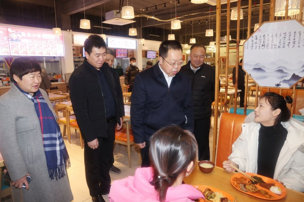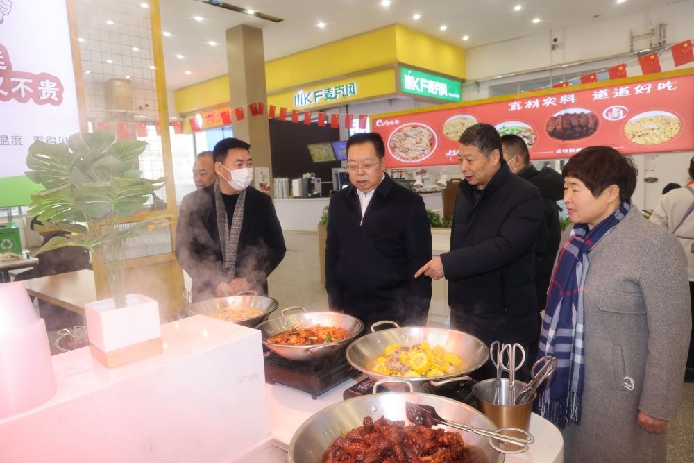 “还有几门课要考?”“大几了?”“哪个学院的?”“考的哪个学校的研究生?”在食堂自习区,刘校长仔细询问正在学习的学子们,并鼓励同学们期末考试考出好成绩。食堂不仅为同学们带来了温暖温馨的备考环境,还有免费饮用热水、粥、姜糖水、用电插口等,从书中走出就可以直奔心仪的“饭菜窗口”,体验心头与胃口的双重满足,同学们反响良好,纷纷点赞。