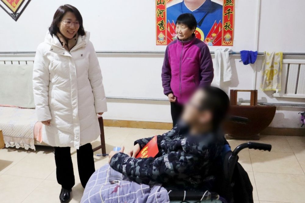 王霞一行首先来到市中区兴隆街道小王同学的家里,送去慰问金与慰问品。小王幼年因意外高位截瘫,12岁时父亲离世,家庭收入微薄。王霞一行与小王及其母亲进行了亲切交流,仔细询问了家庭经济状况、当前面临的现实困难与需求,在得知小王同学在校期间成绩优异、多次获得励志奖学金时,王霞鼓励他“要刻苦学习,发奋图强,努力考取研究生,用知识改变命运”,并对小王祖母随校陪伴小王学习、照顾小王生活起居的行为表示钦佩,关切嘱咐老人保重身体。小王对学校、学院领导老师的周到关怀及同学们的热情帮助表示感谢,并励志要加倍努力,将来尽己所能回报亲人、回报学校、回报社会。