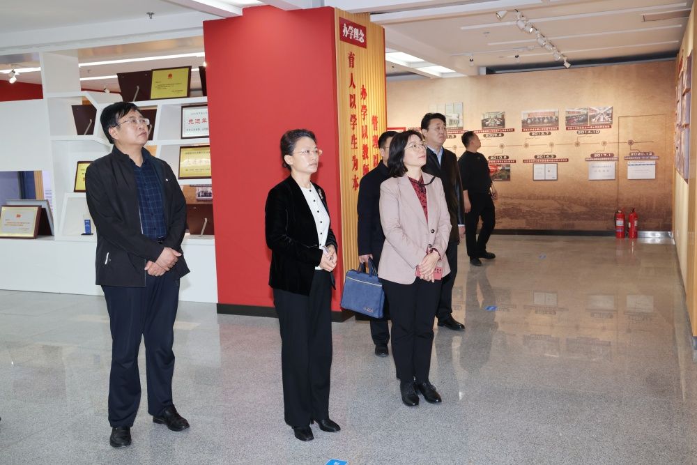 会前,刘芸、董会龙一行参观了best365官网中文版登录办学成就展。