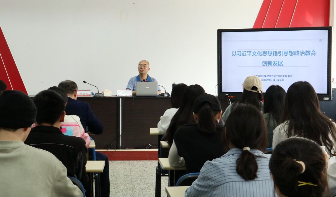 冯刚以“以习近平文化思想为指引深化思想政治教育创新发展”为题,与马克思主义学院师生开展学术交流。他在报告中阐述了习近平文化思想的价值意蕴,从思想政治教育的培养定位、本质追溯、价值引领三个方面阐释了“时代新人”是党的教育方针的时代表达,详细讲述了思想政治教育的发展趋势和时代特质。
