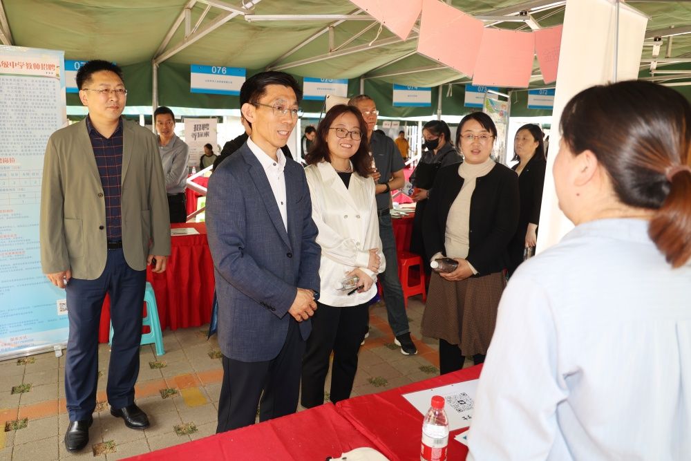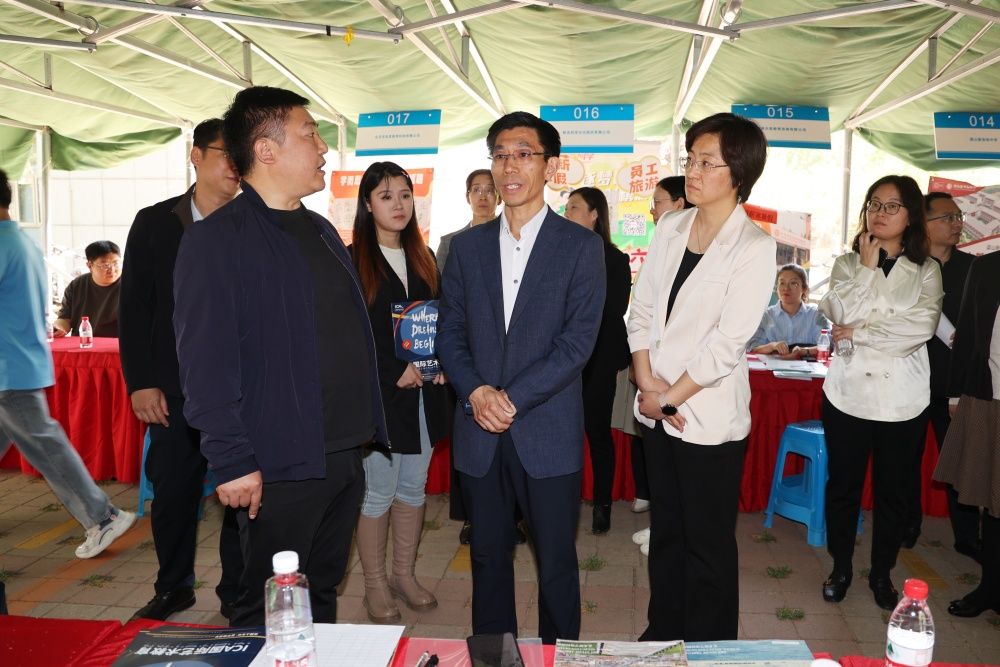 为深入学习贯彻党的二十大精神,落实党中央、国务院“稳就业”“保就业”决策部署,抢抓毕业生求职关键期,为广大毕业生提供广阔的就业平台,有效帮助其更高质量就业,文学院、数学科学学院、物理科学与技术学院、外国语学院于4月18日上午联合举办“文物双全,数语未来”2024年春季专场招聘会。学校党委常委、副校长李强到场与参会单位和学生交流。党委学生工作部(处)、团委 创新创业学院、文学院、数学科学学院、物理科学与技术学院、外国语学院等相关负责人参加活动。