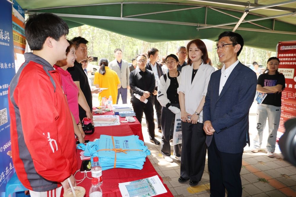 本次招聘会吸引了来自山东、北京、上海、江苏、广东等省内外的120余家单位参会,为毕业生提供岗位1500余个,涵盖制造、环保、媒体、教育、文化艺术等多个行业领域,吸引了500余名毕业生参会。校领导与用人单位进行深入交流,详细了解用人单位岗位需求情况,感谢用人单位对学校就业工作的支持,认真听取用人单位对学校人才培养、学科建设、校企合作等方面的意见和建议。