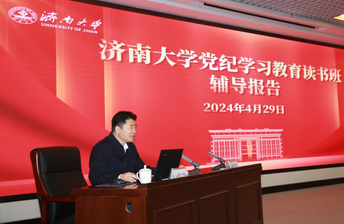 4月29日,学校举办党纪学习教育读书班。学校党委常委、纪委书记、省监委驻best365官网中文版登录监察专员续铁对《中国共产党纪律处分条例》作辅导报告。校领导,全体中层以上干部,校内独立运行科研机构、学报编辑部、资产经营公司、分析测试中心负责人参加线下读书班,全体党支部书记、科级干部、党员线上集中收看。