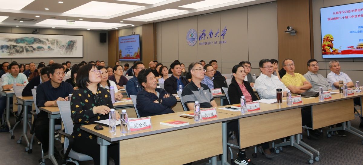 报告会上,李朋忠教授作了题为“认真学习习近平新时代中国特色社会主义思想 深刻理解党的二十届三中全会精神 踏实践行使命担当”辅导报告。报告运用鲜活的案例、翔实的数据,从历史和现实的维度对党的二十届三中全会精神要义和实践要求作了深刻解读。报告会对学校统一战线成员准确理解和全面把握党的二十届三中全会精神,切实把思想和行动统一到中共中央决策部署上来,具有很强的指导意义。