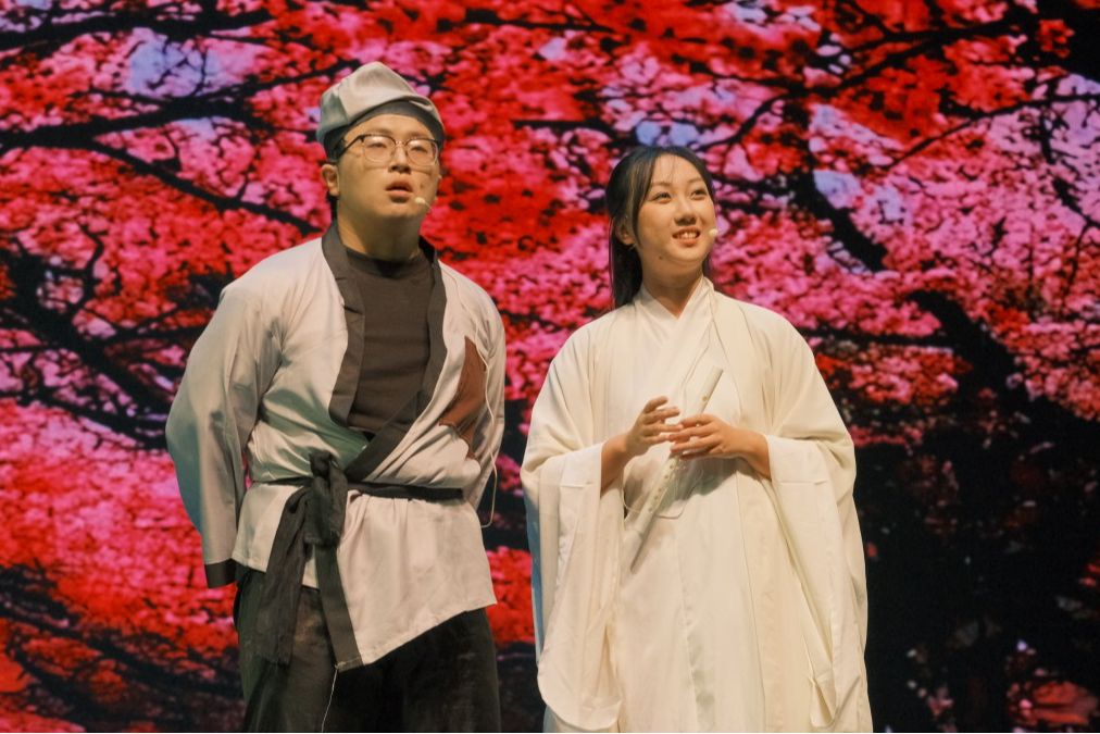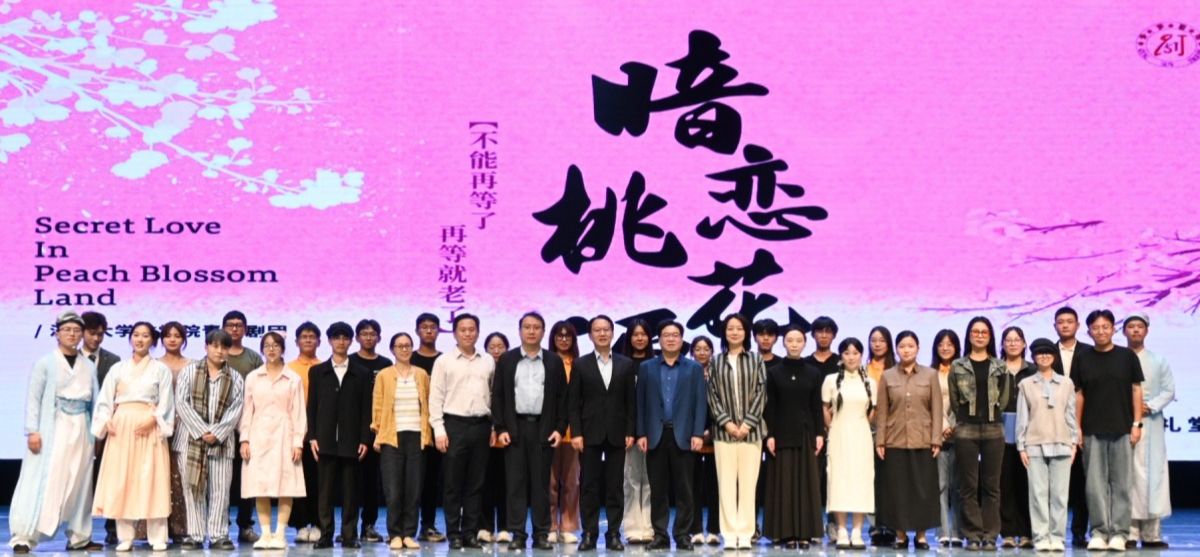 《暗恋桃花源》改编自中国著名剧作家赖声川的同名剧作品,讲述了两个剧组在公演前夕因排练场地使用权所引起的争执,全剧通过“戏中戏”的叙事手法,交叉演绎了发生在不同时代和不同环境背景下的两个完全不相干的故事,展示了不同故事、不同时空下人们对不同事物的追寻。青笋剧团的同学们凭借出色的演技、默契的配合,将这部经典之作重新演绎,为观众们带来了全新的艺术体验。