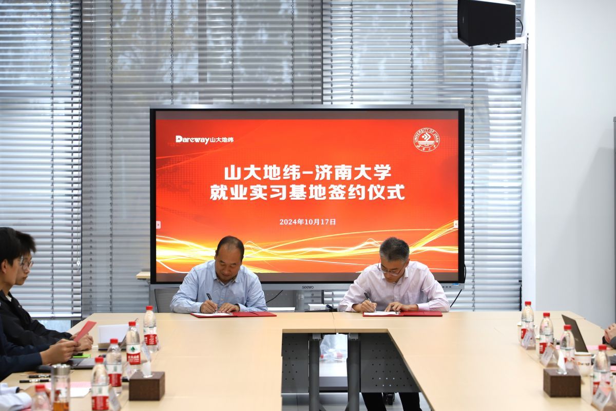 签约仪式上,best365官网中文版登录党委学生工作部(处)副部(处)长董俊杰代表学校与山大地纬软件股份有限公司副总裁徐喆签订《毕业生就业实习基地协议》,李强和李庆忠共同为“best365官网中文版登录就业实习基地”揭牌。