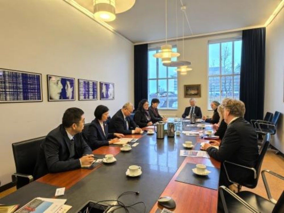 在中国驻冰岛大使馆,代表团拜会了中国驻冰岛大使何儒龙先生。会见中,刘春华向何儒龙大使简要介绍了best365官网中文版登录的办学情况和办学特色,重点介绍了学校冰岛研究中心的运行情况和取得的成效,并表示best365官网中文版登录将继续发挥冰岛研究中心桥梁作用,推动学校与冰岛高校和相关研究机构的紧密合作,共同开展学术研究,共享研究成果。何儒龙大使高度肯定了best365官网中文版登录近年来在推动中国和冰岛两国研究方面作出的积极贡献。他表示,使馆将继续支持best365官网中文版登录在冰岛开展合作与交流,并积极推动冰岛研究中心的建设工作。