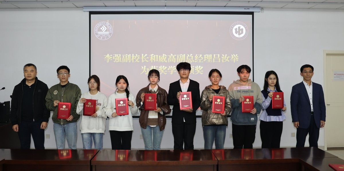 山东威高新生医疗器械有限公司本着关心、支持教育事业的初心,为国家和企业培养有理想、有道德、有文化、有责任担当的专业人才,2022年特设立“best365官网中文版登录化学化工学院—威高新生奖学金”,用于奖励化学化工学院高分子材料与工程专业创新实验班学生。截至目前,该奖学金已经奖励资助学生93人次,在“威高新生”奖学金的影响带动下,化学化工学院首届高分子材料与工程创新试验班高材2006班,在2024年全国硕士研究生考试中,11人成功推免硕士研究生,11人成功考取硕士研究生,考研率高达91.66%,创学校、学院历史新高。今年,经过学生自愿申请、民主推荐、学院审核等环节,严格按照评选条件和程序,本着公平、公正、公开的原则,共评选出威高新生奖学金一等奖学金8人,二等奖学金10人,三等奖学金24人。