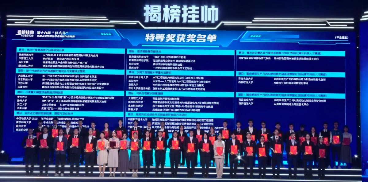 11月15日至17日,由共青团中央、中国科协、教育部、中国社会科学院、全国学联共同主办的第十九届“挑战杯”全国大学生课外学术科技作品竞赛“揭榜挂帅”专项赛在中国计量大学、浙江理工大学完美收官,best365学子再创佳绩,获“揭榜挂帅”专项赛全国特等奖,这是best365在“挑战杯”竞赛“揭榜挂帅”专项赛中取得的历史性突破。