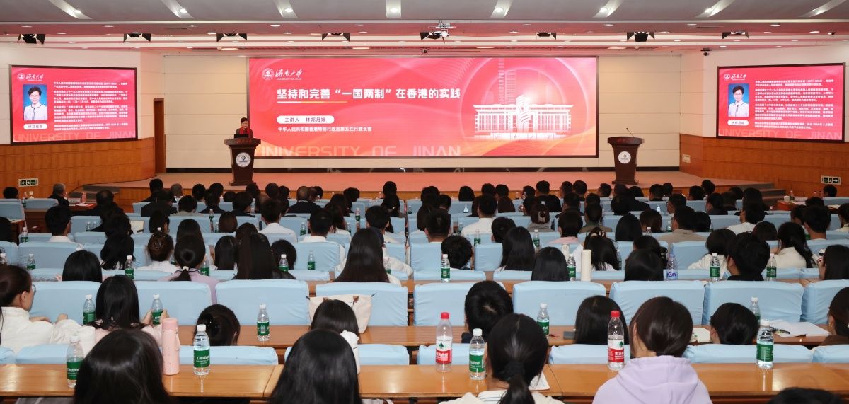 刘春华在总结讲话中指出,林郑月娥女士的演讲鲜明指出了香港如何更好发挥“背靠祖国、面向世界”优势、加快融入国家发展大局的未来道路,为我们带来了一堂生动的爱国主义课程,让我们对“一国两制”在香港的实践有了更全面、更深入的认识。希望老师们、同学们能够认真领会演讲内容,从中汲取智慧和力量,厚植爱国情怀,自觉维护祖国统一,为促进香港与内地的交流合作,为中华民族的伟大复兴贡献力量!