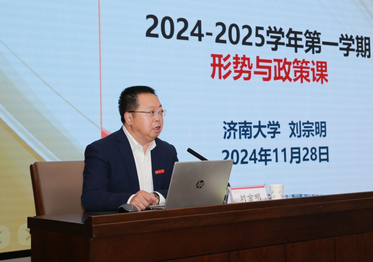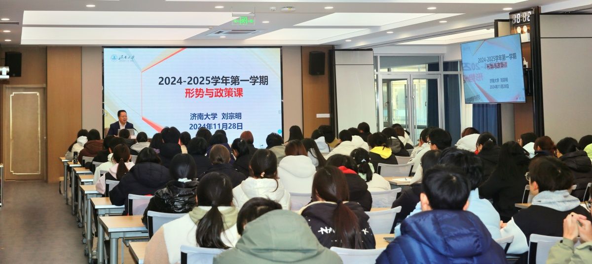 为深入学习贯彻党的二十届三中全会精神,持续推动习近平新时代中国特色社会主义思想进教材进课堂进头脑,进一步落实立德树人根本任务,更好地发挥思政课程在育人体系中的重要作用,11月28日,校长刘宗明为政法学院社工2401班、社工2402班学生讲授“形势与政策”课,政法学院领导班子成员、教师代表、党委宣传部有关负责同志与同学们一同听课。活动由社科处处长、政法学院院长高功敬主持。