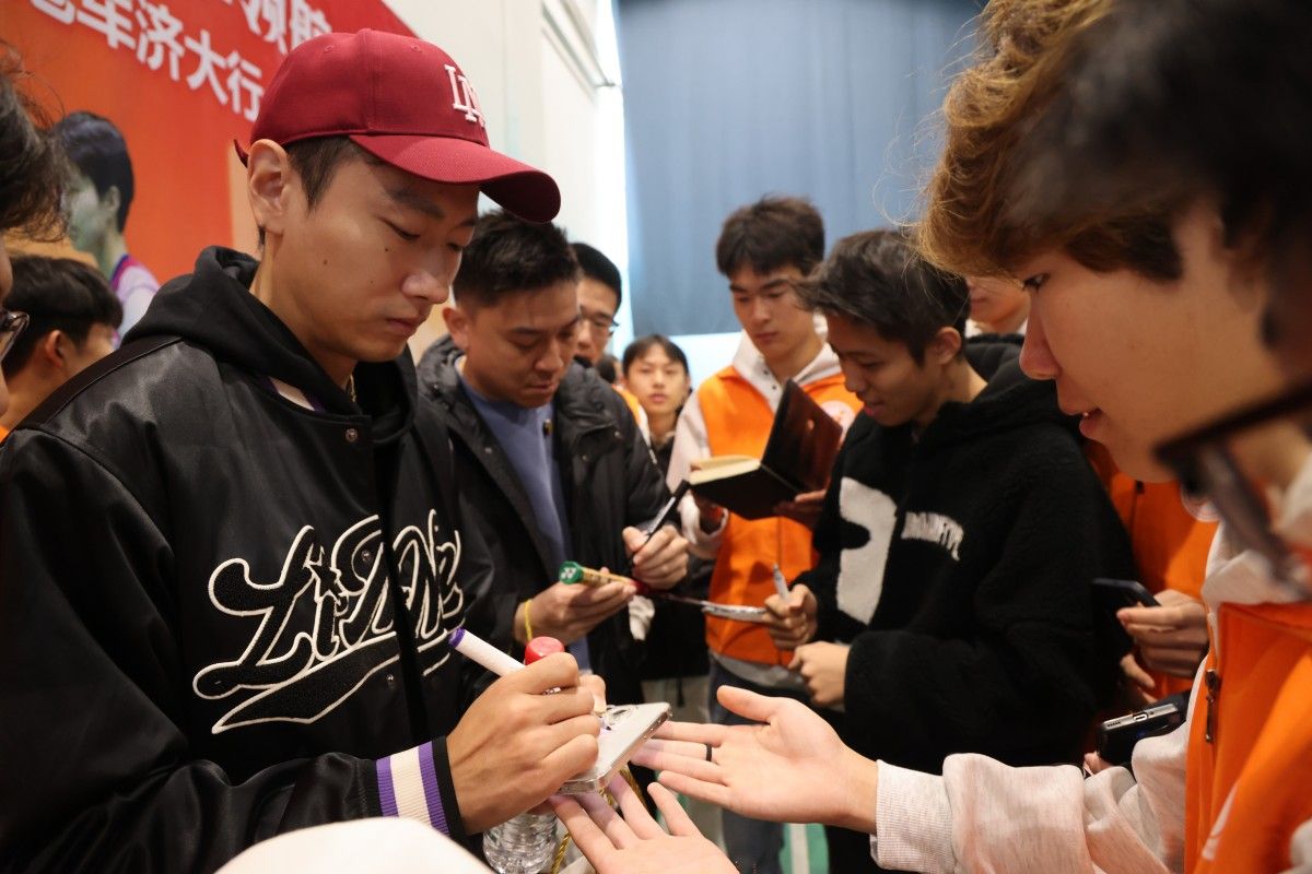 在互动环节中,张楠、杜玥和陈文宏分享了他们的训练日常、比赛心得以及面对困难的心路历程。从如何调整心态到技术上的突破,他们用真实而生动的故事激发了学生们对羽毛球的热爱,也让学生们深刻感受到冠军背后的努力与坚持。