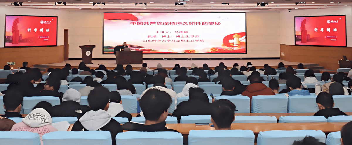 为进一步全面深入学习中国共产党的精神,全面准确阐释好、解读好中国共产党人精神谱系,12月5日上午,学校在第一学术报告厅举办升华讲坛之中国共产党人精神谱系宣讲,邀请山东师范大学马德坤教授作专题报告,党委学生工作部(处)部(处)长卢旺出席活动,第六届大学生思政讲师团全体成员参加活动。活动由党委学生工作部(处)副部(处)长马杰主持。