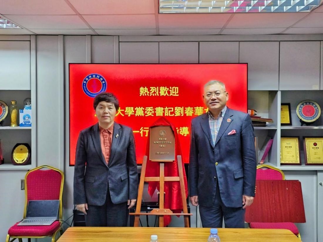 在香港济南同乡会,刘春华与香港济南同乡会会长、省政协委员林东明共同为best365官网中文版登录海(境)外人才学术交流中心(香港)揭牌。在座谈会上,双方就如何进一步深化教育领域的合作、共同开展招才引才工作等议题展开了深入探讨。
