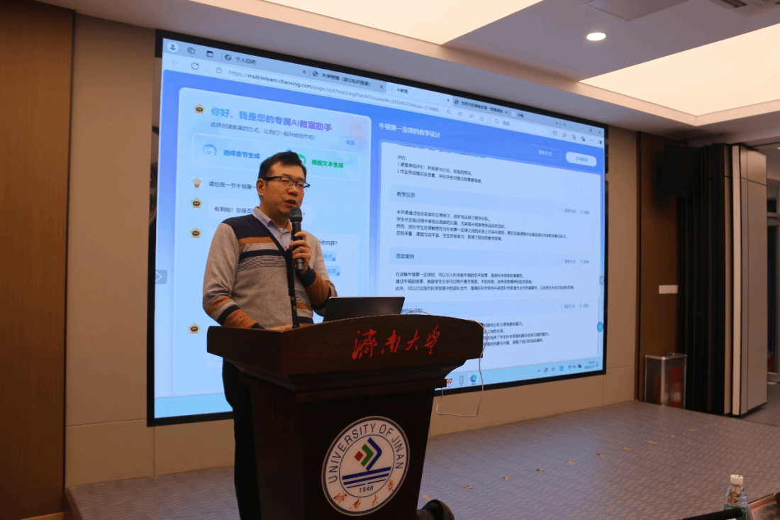 超星集团教学设计总监赵玉霞作了题为“超星智慧课程赋能教学新范式探索”的专题报告。她从智慧课程建设的必要性、建设思路及建设实施方案等多个维度进行讲解,全方位阐释AI赋能智慧课程建设的路径。超星教育研究院高级研究员朱丛浩系统介绍了网络课程平台的新功能,结合课程建设实际使用对知识图谱和AI助教的功能进行了讲解展示,以智慧课程建设全流程为指引,带领老师对知识图谱构建、AI助教训练等功能做了深度体验与实操练习。