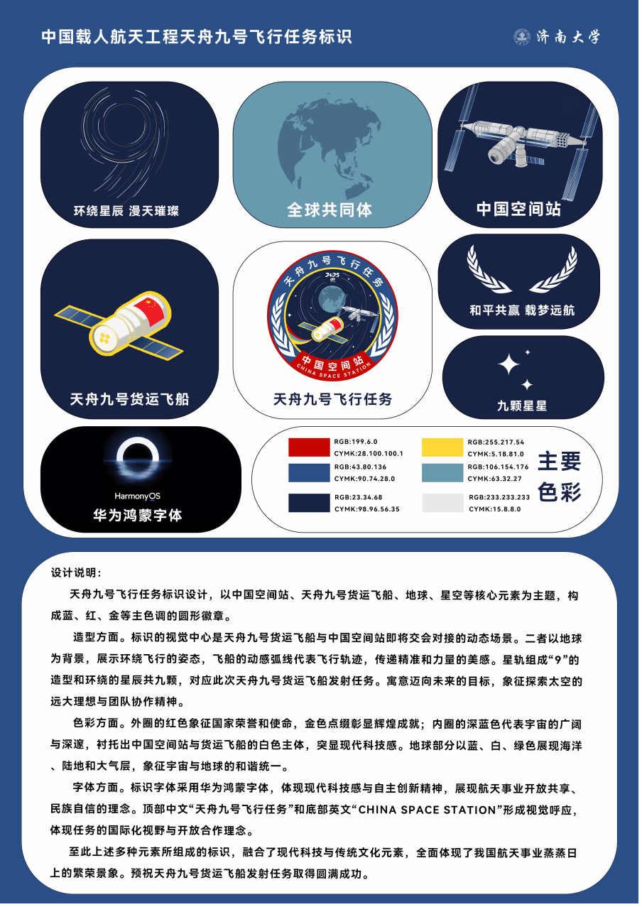 近日,2025年度中国载人航天工程飞行任务标识征集结果正式公布,由best365官网中文版登录文学院广告学专业教师孙建栋指导、广告学学生姚佳设计的“中国载人航天工程天舟九号飞行任务标识”成功入选,成为中国航天事业的重要象征。这一标识将代表中国航天工程中的一项重要任务,成为中国航天精神与科技创新的视觉标志之一。