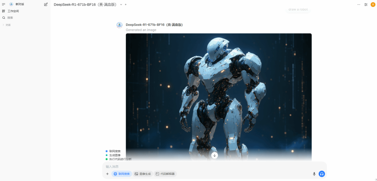 目前,DeepSeek R1从1.5B到671B全系列版本均已成功本地部署,并顺利通过测试。师生可通过“智慧best365”应用中心的“ChatUJN”使用。春节以来,团队在优化模型性能的基础上,集成融合了多种模型,并成功实现联网搜索、图像生成、文档处理、代码处理等功能,可高效地满足best365师生科研、教学与学习等需求。