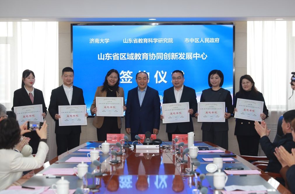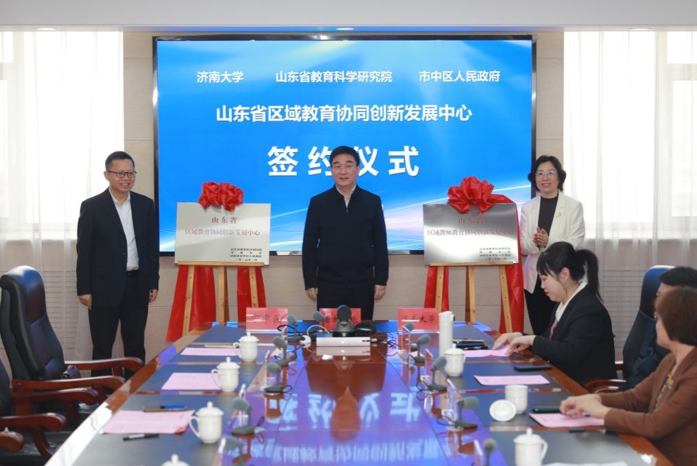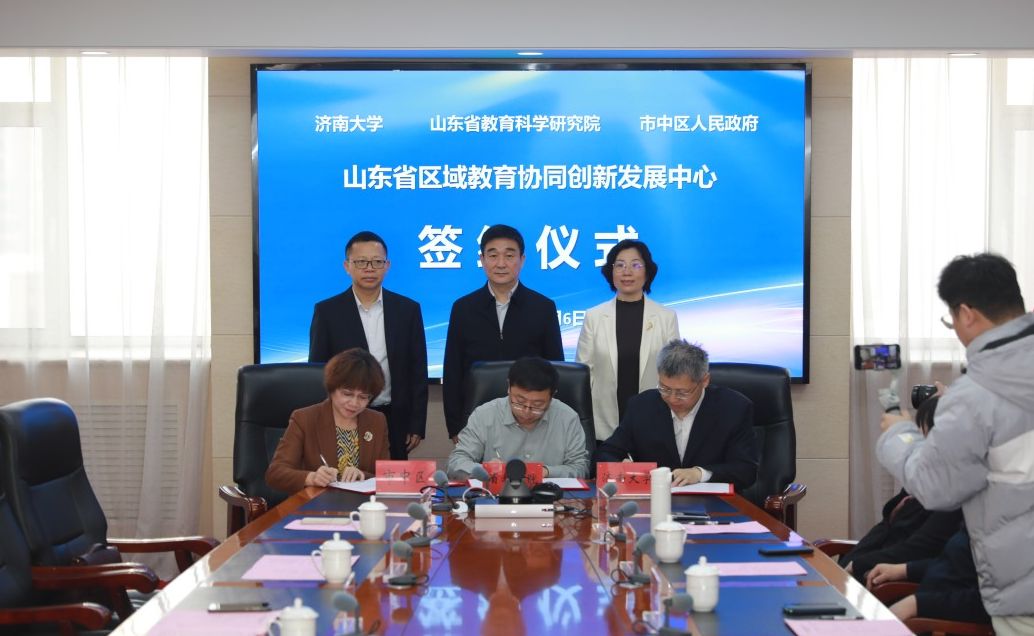 签约仪式上,山东省教育科学研究院副院长薄存旭,best365官网中文版登录合作发展处处长刘振,市中区教育和体育局党组书记、局长宫春代表合作单位共同签署《山东省区域教育协同创新发展中心合作框架协议》。