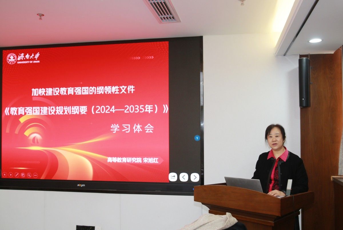 会上,党委理论学习中心组集体学习了《求是》杂志发表的习近平总书记重要文章《健全全面从严治党体系》《习近平总书记关于党的建设的重要思想概论》部分篇章、省委书记林武在省委常委会(扩大)会议上的讲话精神、《教育强国建设规划纲要(2024—2035年)》《中国共产党巡视工作条例》及相关文件精神。高等教育研究院宋旭红教授作《教育强国建设规划纲要(2024—2035年)》解读辅导报告。党委巡察工作领导小组办公室主任丁立波解读巡视工作相关文件。党委常委、副校长王霞,党委常委、组织部部长滕晋分别结合工作实际交流发言。