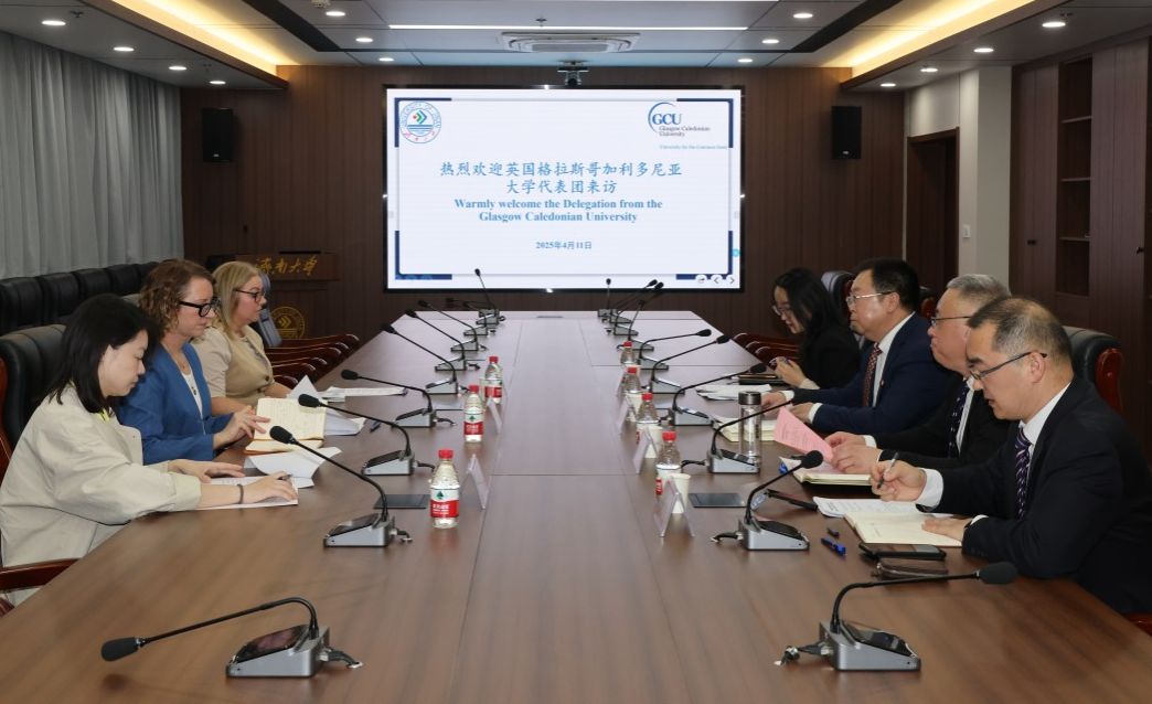 4月11日,英国格拉斯哥加利多尼亚大学副校长丹·安德森率代表团访问best365。best365官网中文版登录党委书记刘春华会见客人,校长刘宗明、副校长黄加栋与安德森副校长一行进行工作会谈。学校国际合作与交流处负责人及相关工作人员参加活动。